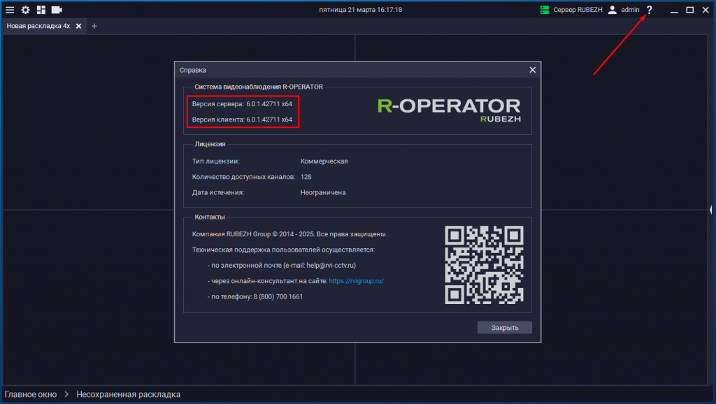 - Версию программного обеспечения с полным указанием билда (версию ПО можно посмотреть в окне программы при нажатии на кнопку "Справка" - знак вопроса)