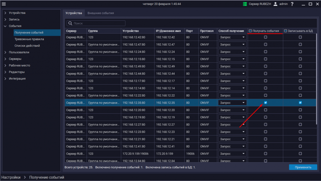 - В настройках Оператора в меню "События" - "Получение событий" у устройств не стоят галочки "Получать события"