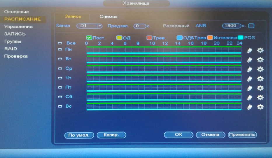 4. Далее перейдите в «Управление – Хранилище – Расписание». Включите запись POS