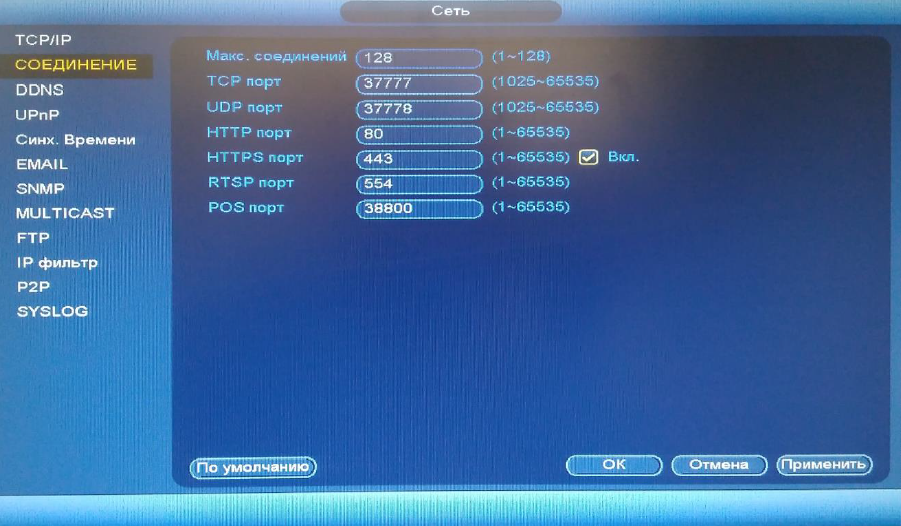 2. Зайдите на web интерфейс регистратора - "Управление" - "Сеть". Проверьте номер POS-порта (по умолчанию 38800).