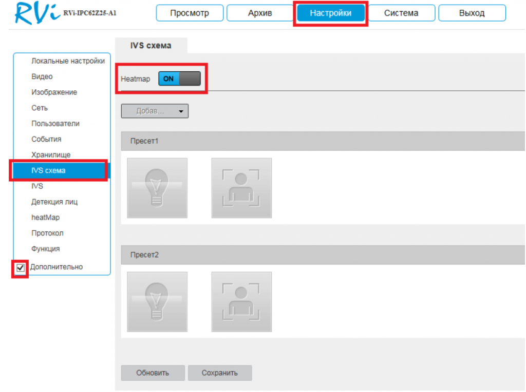 3.1 Для включения тепловой карты, перейдите в раздел «Настройки» - «IVS схема» и щелкните переключатель «Heatmap» в положение «ON»