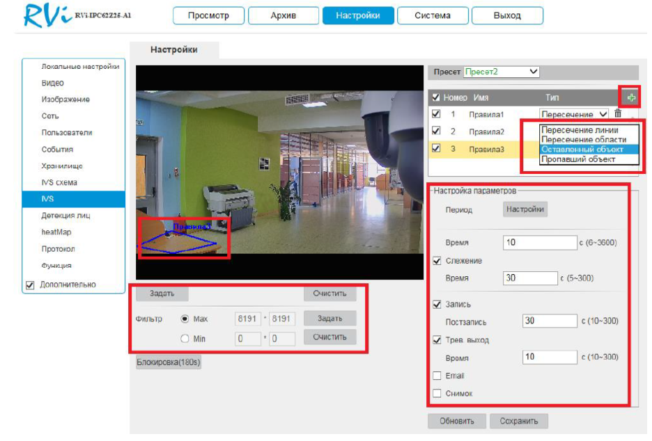 Пример настройки и использования IVS на камере RVi-IPC62Z25-A1